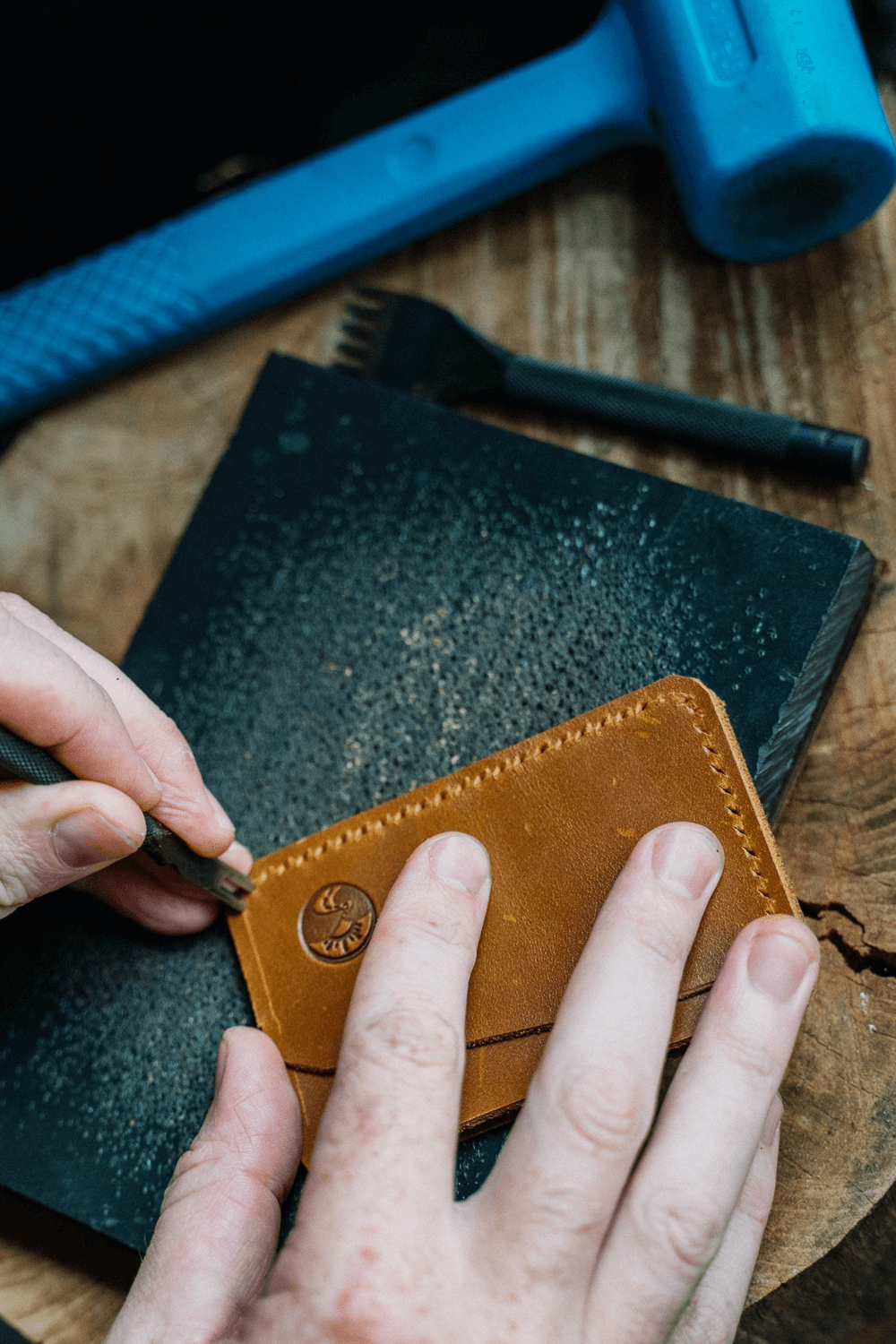 First, we will clean and condition the affected area of the wallet. Then, we will use a special adhesive to bond the two pieces of leather together. Finally, we will finish by stitching the seam for extra reinforcement.